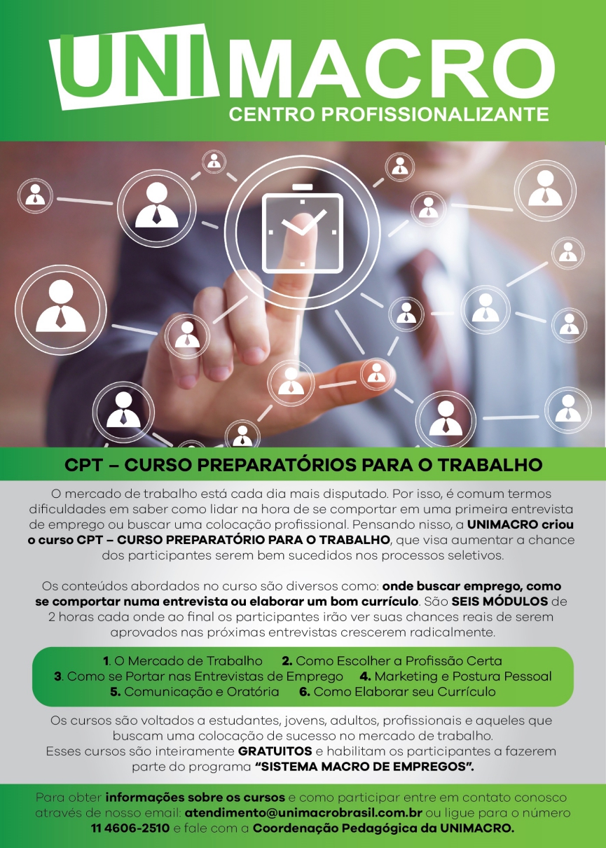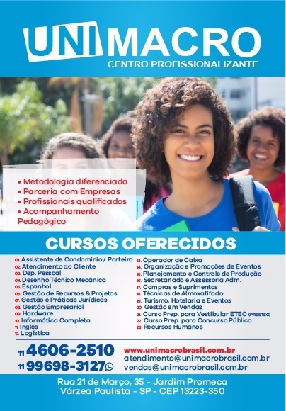 Informações podem obtidas no Sindicato pelo telefone: 4521.6700 ou direto na UniMacro (11) 4606.2510 ou ainda pelo e-mail: atendimento@unimacrobrasil.com.br.